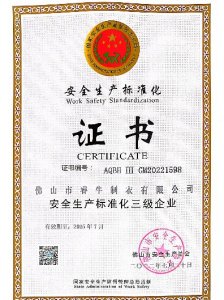 • 安全生產(chǎn)標(biāo)準(zhǔn)化三級(jí)企業(yè) 證書
