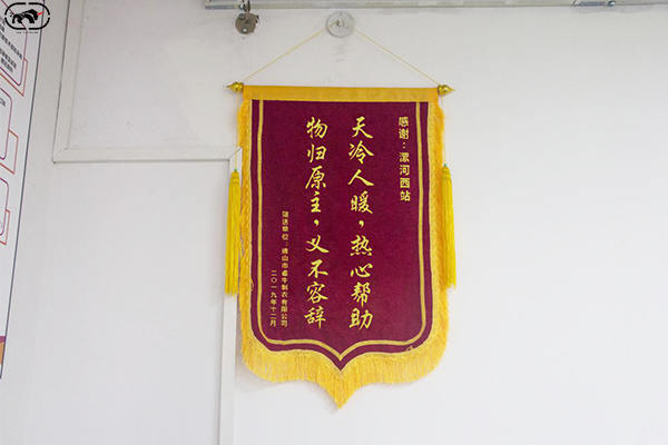 2、贈送廣州南站“物歸原主義不容辭,天冷人暖熱心幫助”錦旗一面;