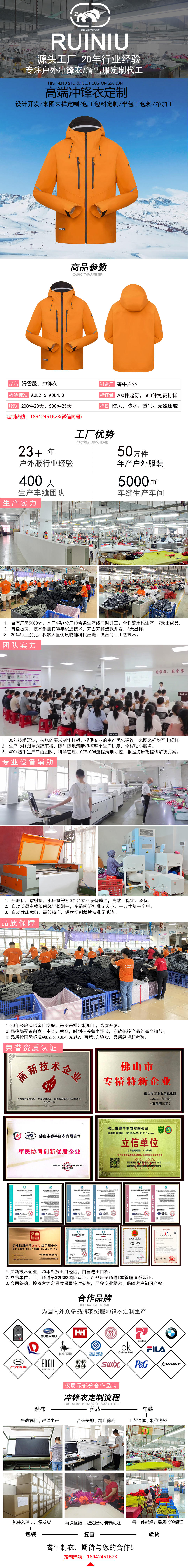 廣東睿牛戶外用品有限公司:專注沖鋒衣、滑雪服、風衣、夾克的梭織服裝定制加工廠家